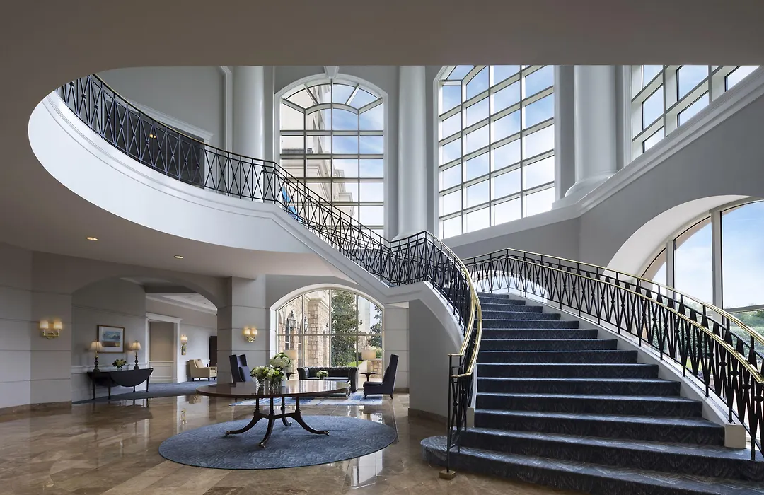 All 244 rooms at The Ballantyne showcase premium bedding and convenient amenities such as flat-screen TVs, minibars, and laptop-compatible safes. Many rooms feature walk-in showers and spacious marble baths, providing a luxurious experience for guests.