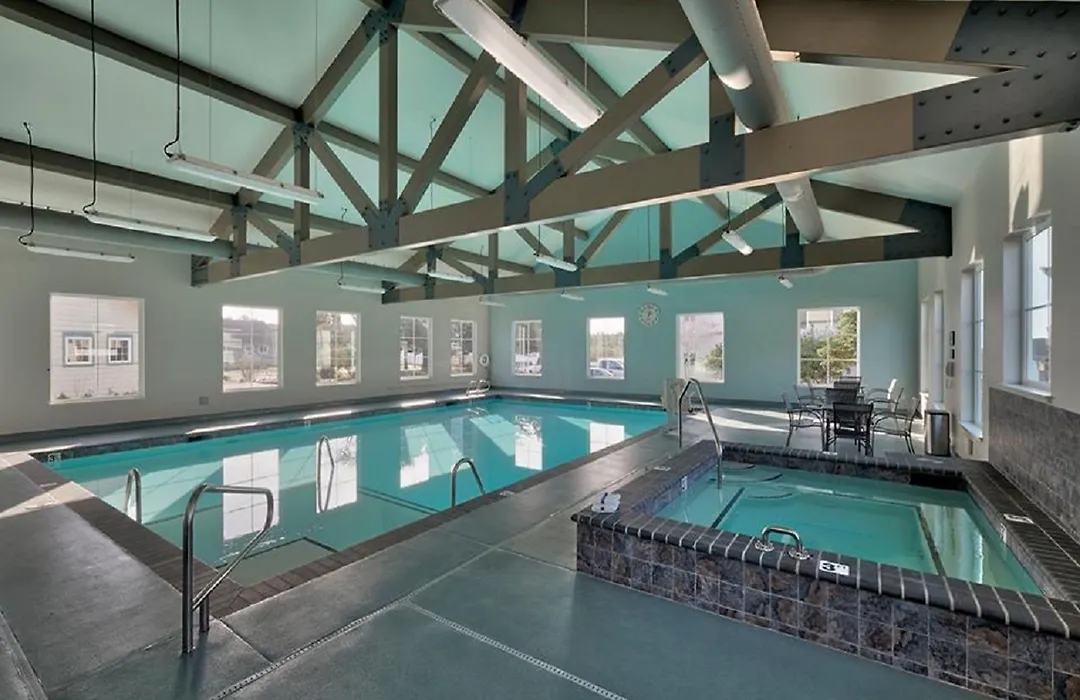 Leisure facilities include an indoor pool, a hot tub, a children's playground, and a sand volleyball court. The famous Discovery Trail, starting at the property, provides opportunities for hiking, biking, and exploring the scenic surroundings.