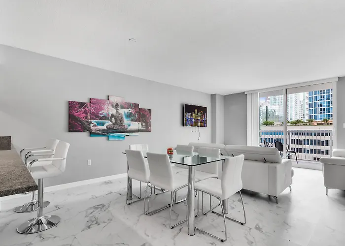 For leisure, guests can enjoy billiards onsite. The luxury condo is also close to recreational activities like sailing and scuba diving. Additionally, Bayfront Park and Ocean Drive provide scenic spots in the area, enhancing the outdoor experience.