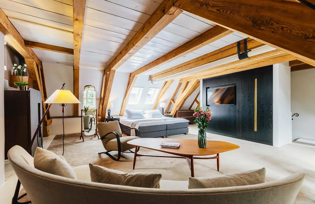 Rooms at The Dylan Amsterdam feature custom designs with luxurious materials, including marble and wood. Options range from Luxury Single Rooms to Premium Suites, all equipped with a B&O sound system, Illy espresso maker, and Aesop bath amenities. Many rooms offer unique views over the garden or canal.