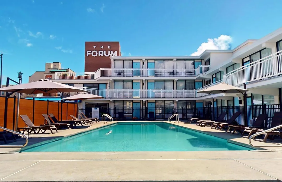 The Forum Ocean City, rated 8.6/10 on Booking.com, offers family-friendly accommodations just a short block from the beach. Key amenities include a heated outdoor swimming pool, free Wi-Fi, and daily housekeeping services, making it suitable for both short and extended stays.