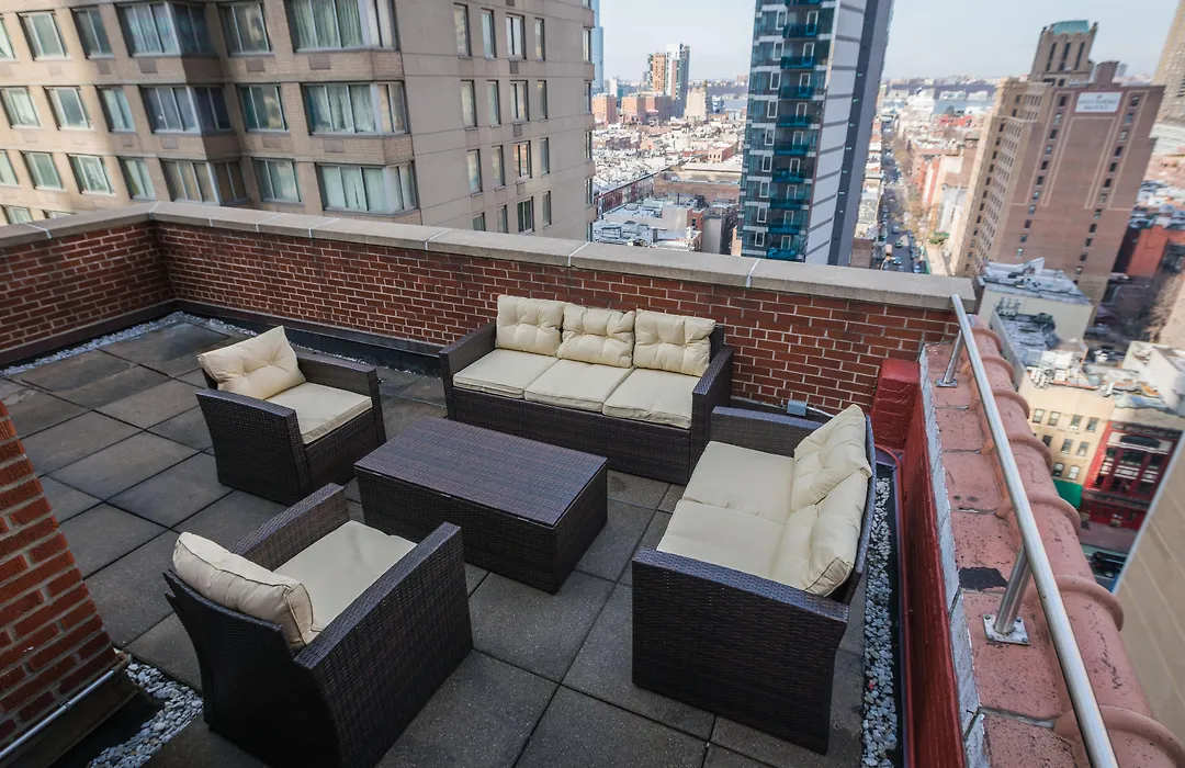 Guest rooms at The Gallivant Times Square include premium bedding, laptop-compatible safes, and workspaces designed for productivity. Some rooms provide personal outdoor balconies, allowing guests to enjoy city views in a private setting.
