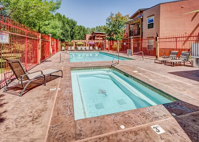 The Gonzo Inn, a 3-star Moab hotel with a 9.2/10 rating on Booking.com, offers a unique desert chic vibe complemented by an array of amenities including a heated saltwater pool, on-site restaurant, and pet-friendly accommodations. The hotel provides easy access to popular outdoor activities and local shopping.