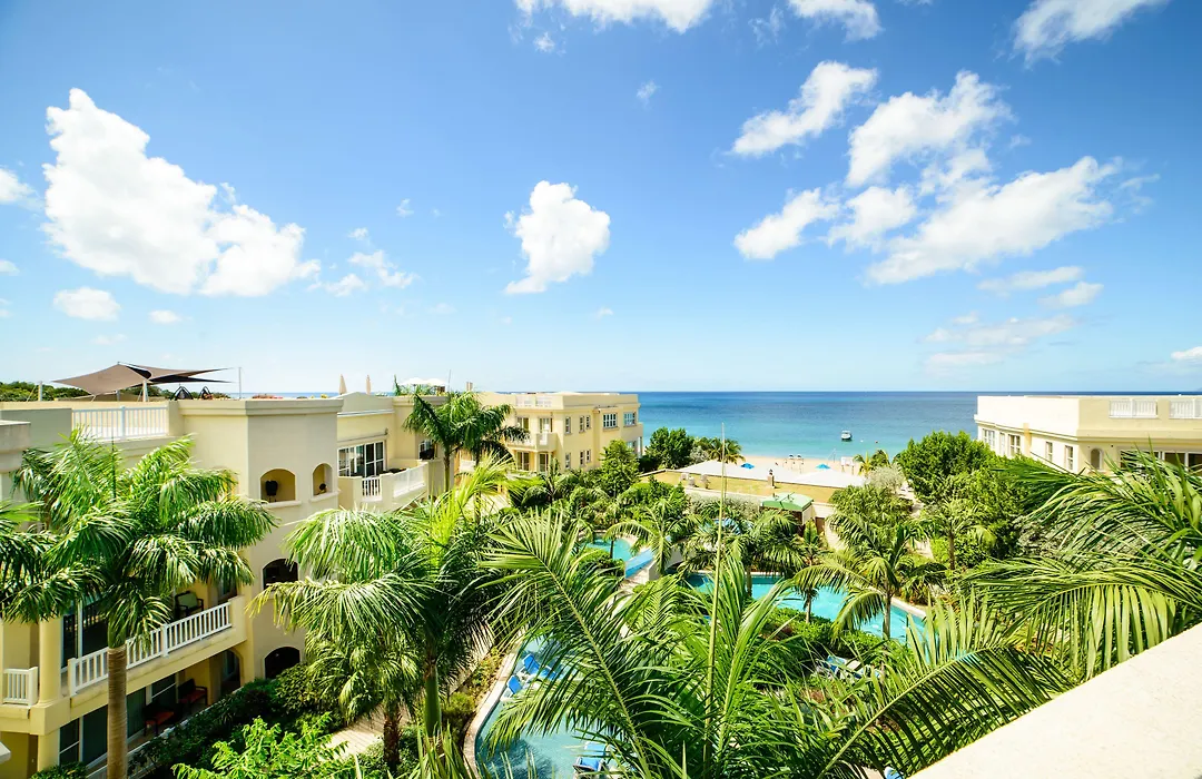 The Hamilton Beach Villas & Spa offers 79 air-conditioned suites that include fully appointed kitchens with Bosch appliances, indoor and outdoor dining areas, and two full baths. Each suite features premium bedding, laptop-friendly workspaces, and some have views of the Caribbean Sea or gardens.