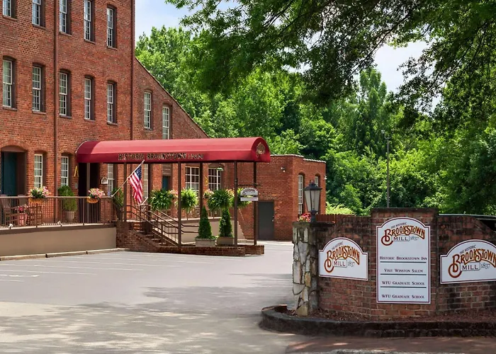 Historic Brookstown Inn, Trademark Collection By Wyndham is a uniquely designed 3-star Winston-Salem hotel offering a blend of historic charm and modern conveniences. Amenities include free Wi-Fi, complimentary parking, and a nightly wine and cheese reception with special offerings of local wines and cheese plates.