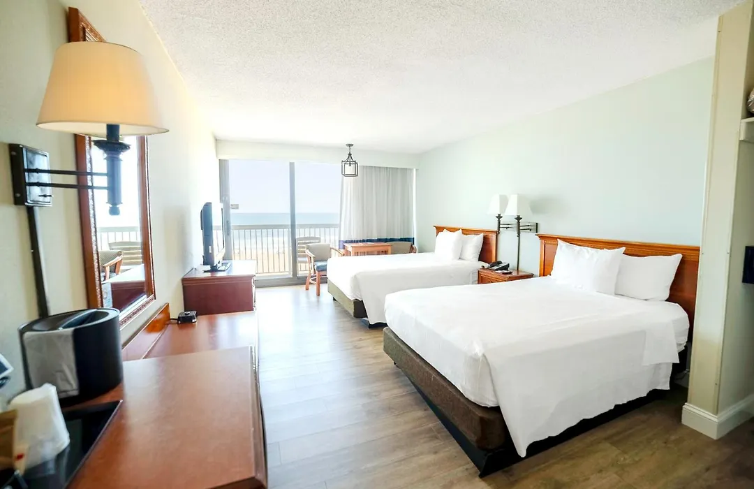 The Oceanfront Inn - Virginia Beach provides various room types, all designed for comfort. Each room includes a private balcony with partial ocean views, flat-screen TV, refrigerator, and coffee maker.