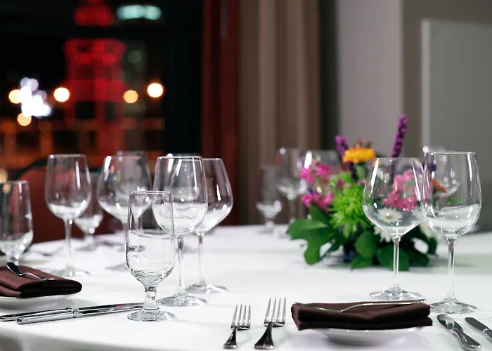 Chaz on the Plaza is the on-site restaurant, serving modern American cuisine with a focus on seasonal and local ingredients. The menu highlights dishes such as Kansas City strip steak and Lobster Benedict.