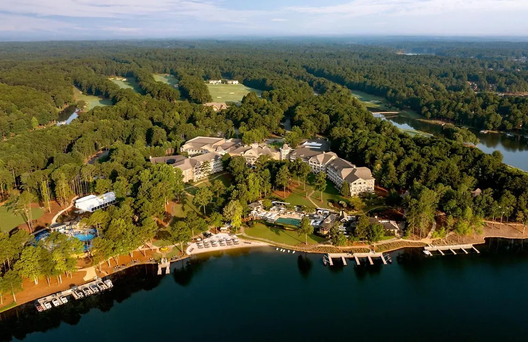 The Ritz-Carlton Reynolds, Lake Oconee is a 4-star lake resort offering golf experiences, world-class spa services, and lakeside dining. It boasts a rating of 8.9/10 on Booking.com and features various amenities for guests seeking luxury in a rustic setting.