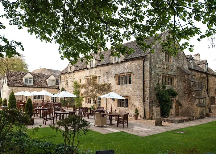 The Slaughters Country Inn, a 5-star establishment rated 8.7/10 on Booking.com, offers a mix of traditional and contemporary design in a picturesque setting. This family-friendly hotel features cozy rooms, a restaurant serving local cuisine, and a bar with a selection of local ales. Guests can enjoy outdoor spaces like sunny terraces and gardens by the River Eye.
