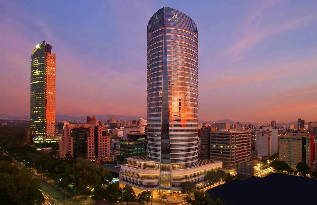 Dining options at The St. Regis Mexico City include the Diana Restaurant, which specializes in traditional Mexican cuisine with a modern twist, and La Table Krug, an eight-course French fine dining experience. Other venues include Sushi Tatsugoro and King Cole Bar, known for its sophisticated ambiance.