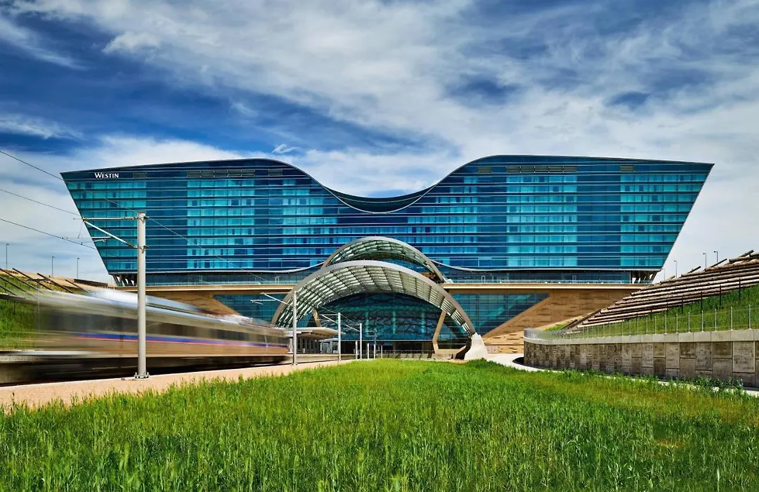 The Westin Denver International Airport offers modern amenities with direct access to Denver International Airport's Jeppesen Terminal. This 4-star hotel features 519 guest rooms and suites, an award-winning design, and onsite dining options including Grill & Vine and the Sky Lounge.