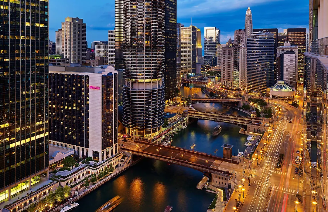 The Westin Chicago River North, a 4-star hotel with an 8.6/10 rating on Booking.com, offers an iconic riverfront experience in the vibrant River North district. Guests can enjoy contemporary dining options, extensive meeting facilities, and luxury accommodations with views of the Chicago River or downtown skyline.