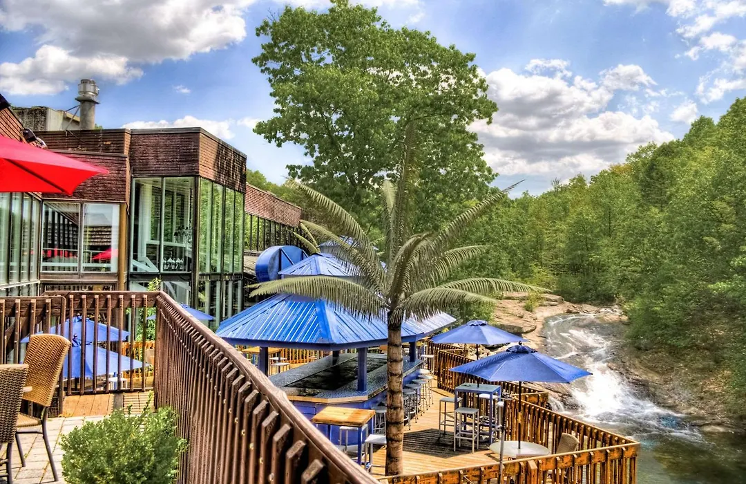 On-site dining at The Woodlands Inn includes Crescenzo's Brick Oven Eatery, featuring wood-fired pizzas and burgers, along with Shogun Japanese Steakhouse offering teppanyaki and sushi. Guests can relax with drinks at SKYY Vu Deck Bar, which has a scenic view over the stream.