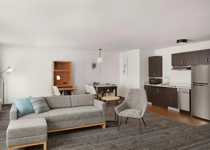 The Towneplace Suites features spacious, pet-friendly suites equipped with air conditioning, flat-screen TVs, kitchenettes with refrigerators and ovens, and separate sitting areas. Each suite provides modern conveniences for an extended stay, including a work desk and free Wi-Fi.