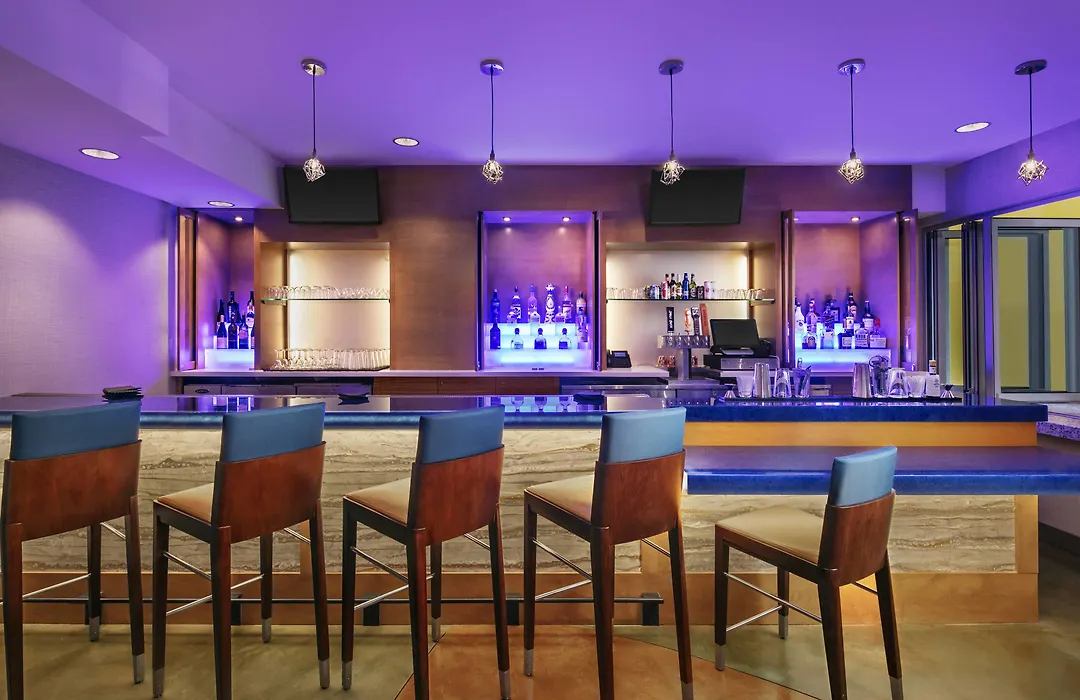 Fourteen45 Bar and Grill serves San Diego cuisine, with options available for dining indoors or outdoors by the fire pit. Guests start their day downtown with a complimentary hot breakfast including eggs, waffles, and oatmeal.
