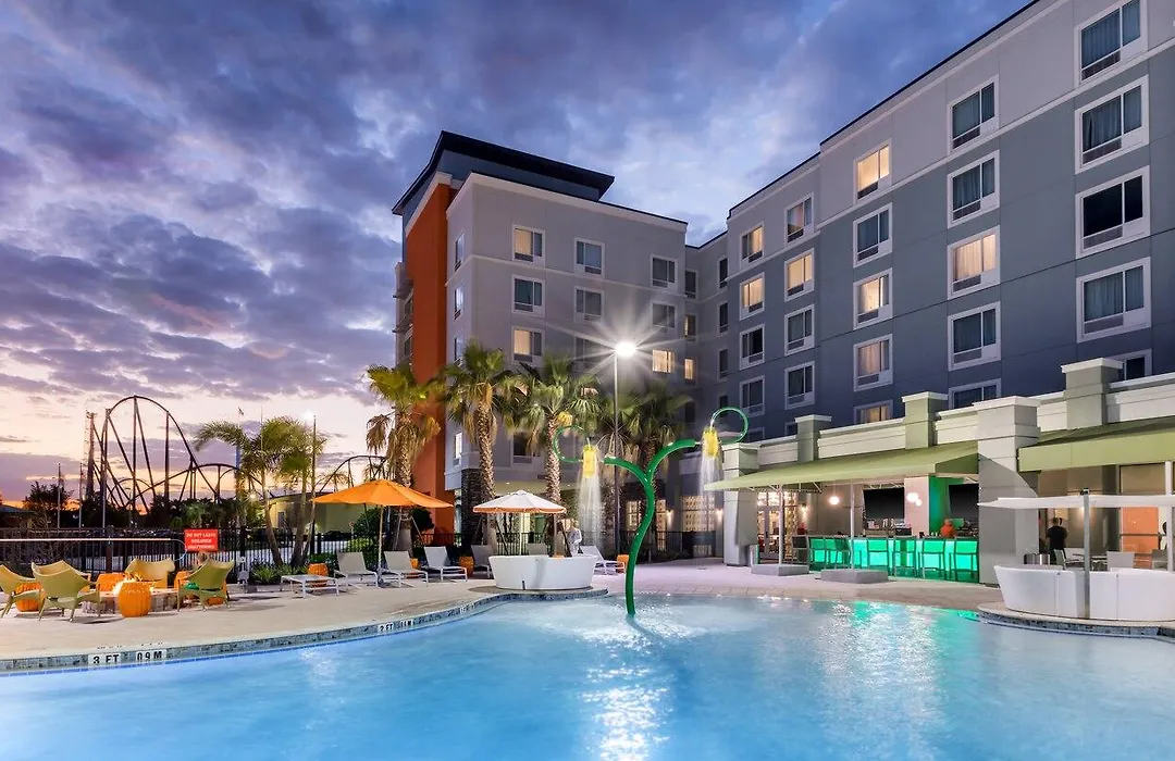 The hotel features an outdoor swimming pool and guests can unwind at the poolside Tiki bar. Local attractions like SeaWorld(R) Orlando and Aquatica are just a short distance away, providing numerous activities for families.
