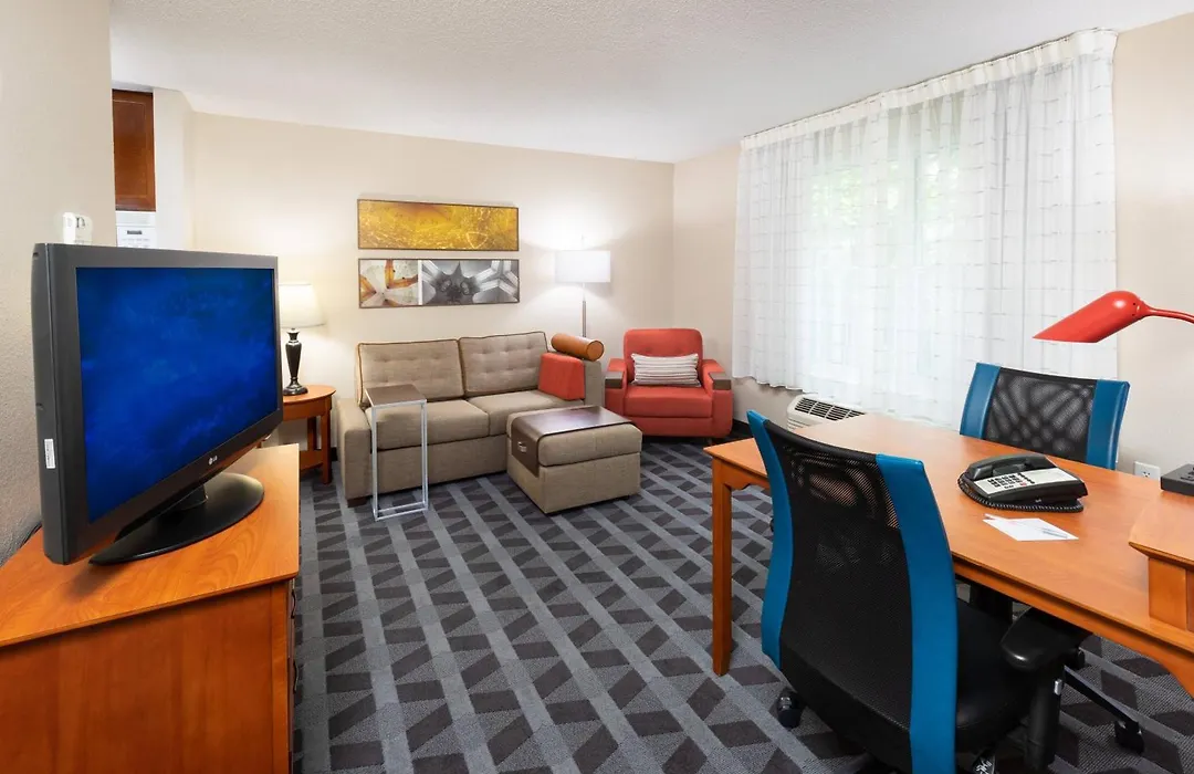 Rooms at TownePlace Suites Bowie Town Center include air conditioning, kitchen amenities such as refrigerators and stovetops, and free Wi-Fi. Selected units feature additional space with seating areas, ensuring comfort during extended stays.