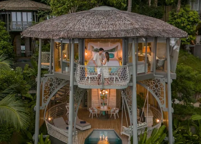 Treehouse Villas Koh Yao - Adults Only offers a unique adults-only experience with luxury treehouse accommodations, featuring private plunge pools and breathtaking views of Phang Nga Bay. This 5-star resort combines eco-friendly design with upscale amenities, including a clubhouse, restaurant, and spa.