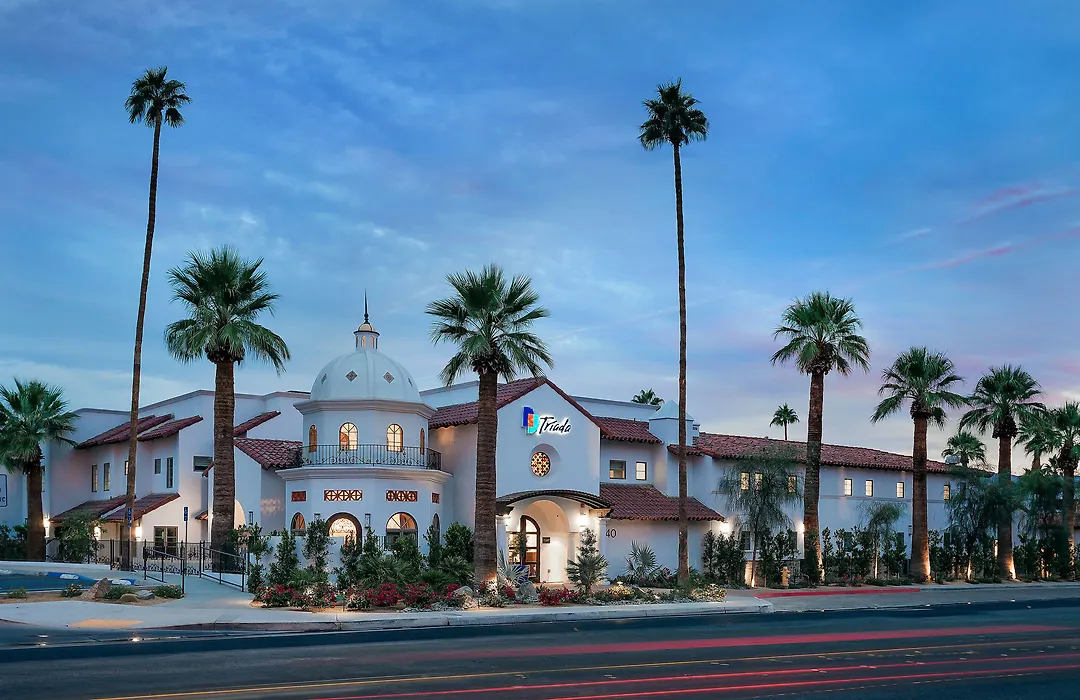 Triada Palm Springs, Autograph Collection is a 4-star luxury boutique hotel featuring two refreshing pools, a spa, and the Iluminara Restaurant. This Palm Springs hotel combines modern amenities with an eclectic blend of Hollywood nostalgia.