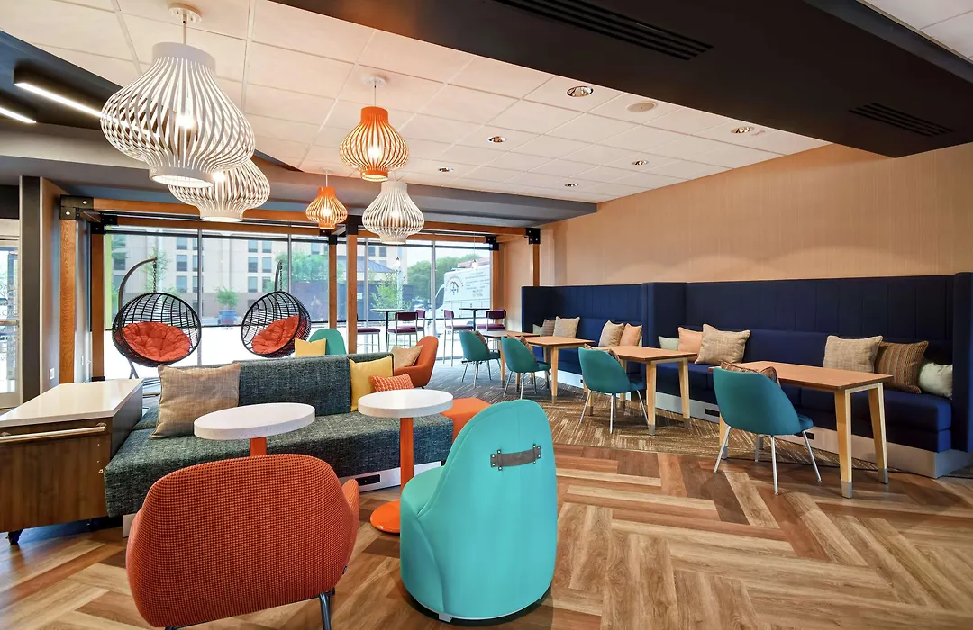 The hotel serves a complimentary hot breakfast buffet with 30 different sweet and savory options. Dining options nearby include Chili's, just 1.2 miles away.