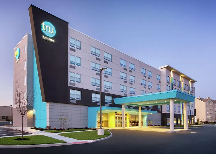Tru By Hilton Audubon Valley Forge is a modern 3-star hotel featuring an indoor pool and fitness center, ideal for both leisure and business travelers. Guests can enjoy free WiFi and a daily build-your-own breakfast, complete with various toppings for personalized waffles.