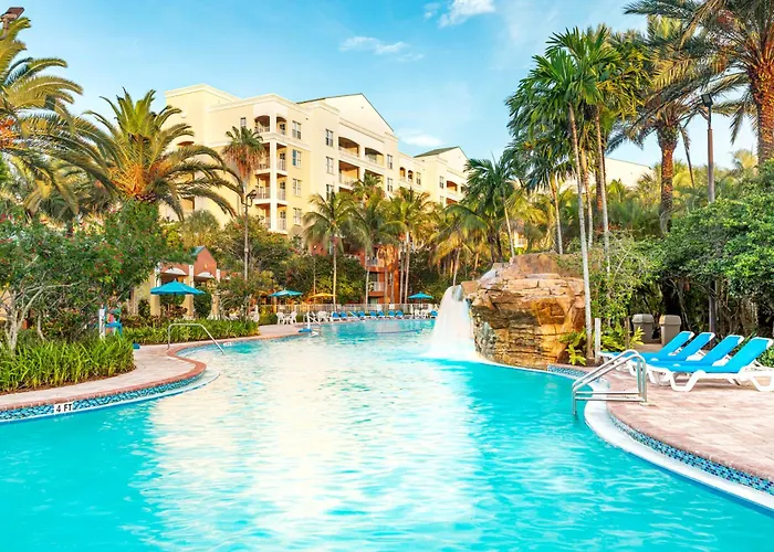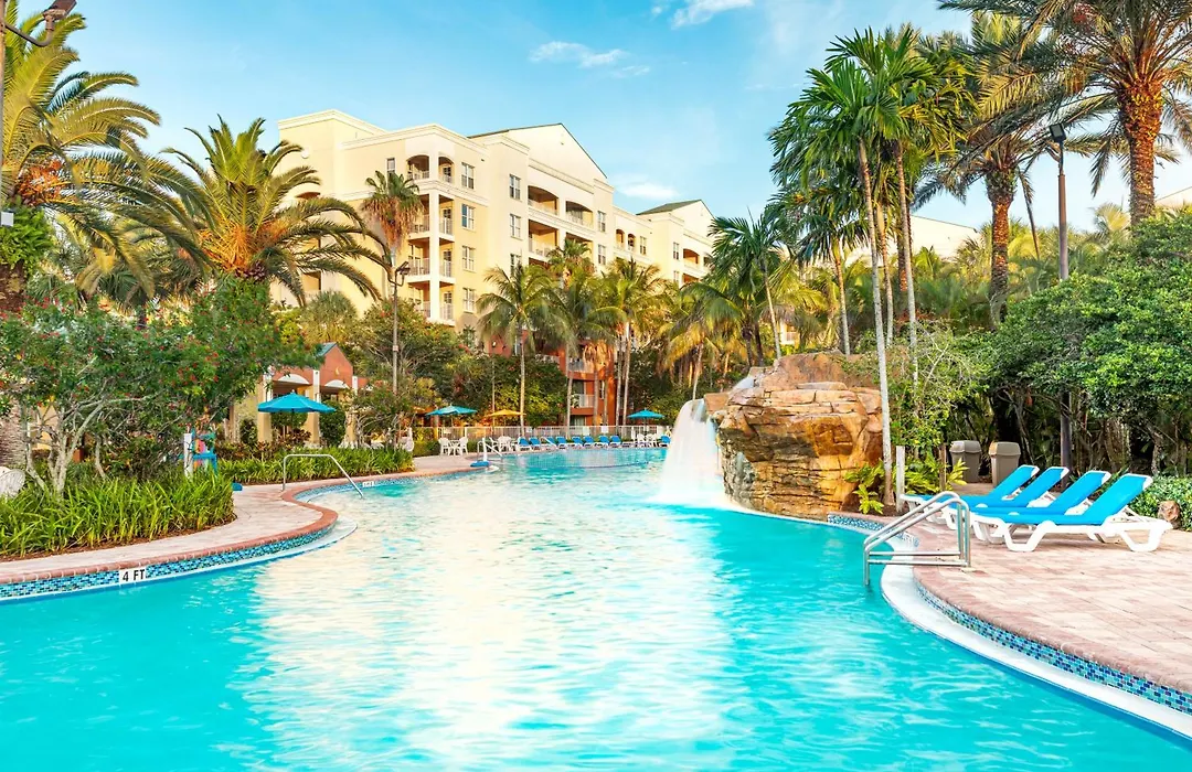 Vacation Village At Weston, Fort Lauderdale features spacious one- and two-bedroom suites with fully equipped kitchens. This 4-star family-friendly resort includes a heated outdoor swimming pool with a waterfall feature, two fitness centers, and a children's pool. It consistently maintains a 7.9/10 rating on Booking.com.