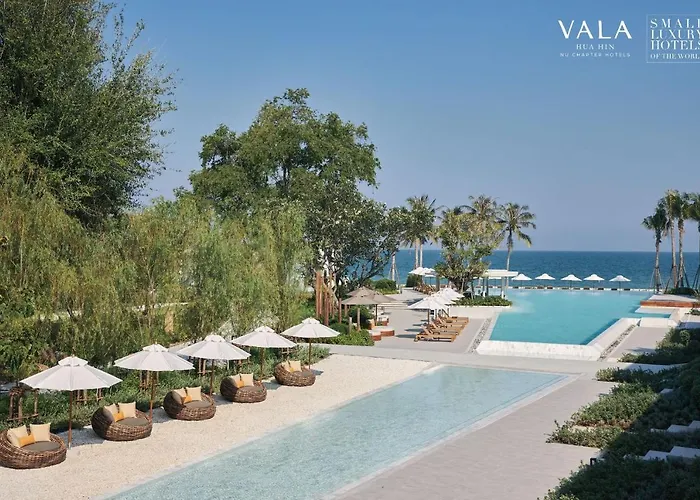 Vala Hua Hin - Nu Chapter Hotels is a 5-star hotel rated 9.2/10 on Booking.com. This Cha-Am hotel features expansive gardens with direct beachfront access and multiple swimming pools, including a panoramic Olympic-sized option. Amenities include a fitness center and spa services, complemented by a focus on local culinary experiences and sustainable practices.