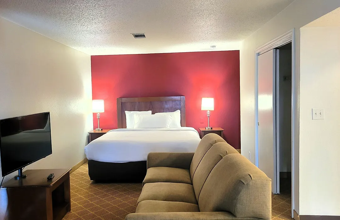 Rooms at Value Suites Extended Stay - St Louis include a seating area, air conditioning, and a flat-screen TV with cable channels. Each suite has a full kitchen equipped with a stovetop, refrigerator, dishwasher, and oven, catering to both short and long-term stays.