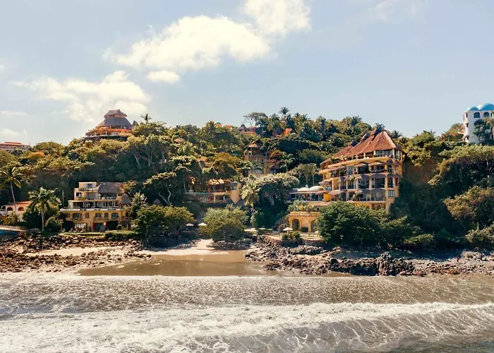 Villa Amor, a 4-star Sayulita hotel rated 8.7/10 on Booking.com, features individually designed villas with ocean views and a beachfront setting. Amenities include a bistro and bar, an outdoor yoga studio, and a two-level swimming pool.