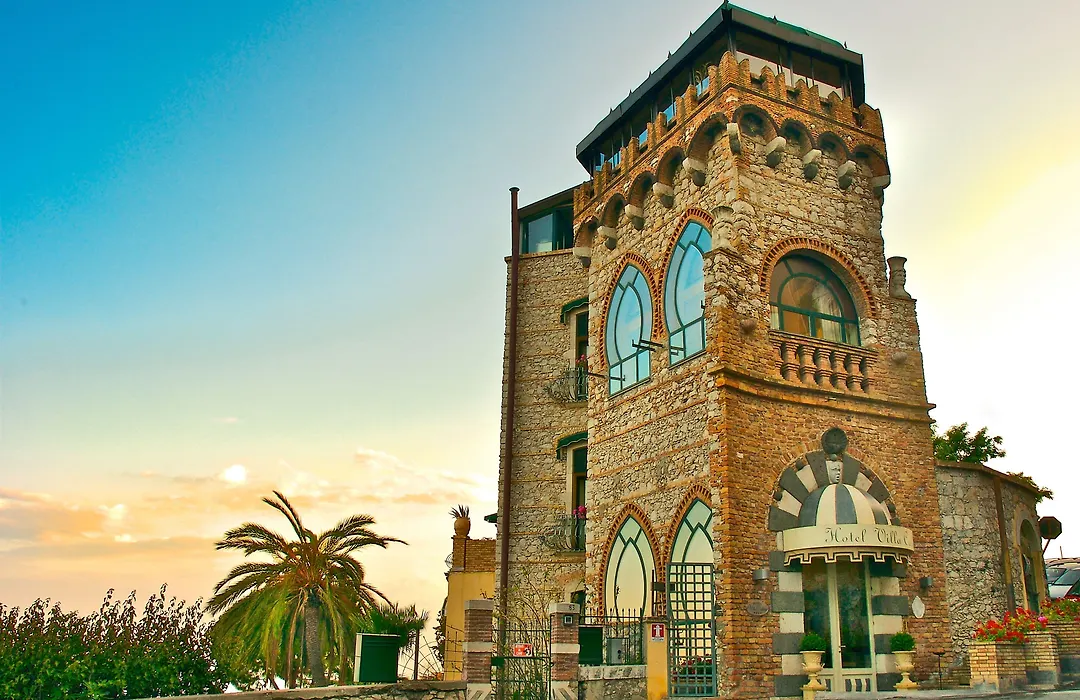 Hotel Villa Carlotta features elegant rooms and breathtaking sea views as a boutique hotel in Taormina. Guests can enjoy a gourmet breakfast overlooking the Ionian Sea and an array of amenities, including a swimming pool, rooftop restaurant, and gym.