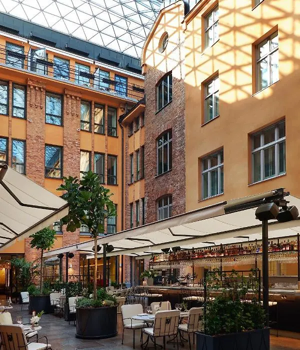 Restaurant Dagmar serves Mediterranean cuisine crafted by acclaimed chefs, Niclas Jönsson and Daniel Höglander. Guests can unwind at The Garden Bar, offering cocktails and weekly lunch specials in a lively setting featuring a glass-roofed atrium.