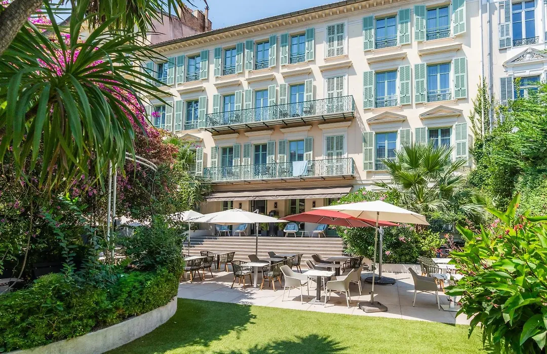 Hotel Villa Victoria, a 4-star establishment with an 8.4 rating, features a 6458 ft² garden and a marble-floored lobby styled like a living room. This Nice hotel offers a bar service with refreshments and room service for continental breakfast, creating a welcoming environment for guests.