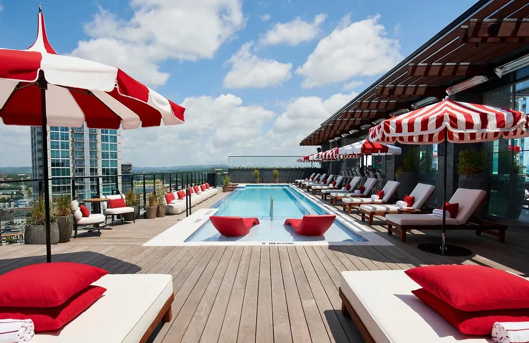 Experience Virgin Hotels Nashville, a 4-star luxury boutique hotel rated 8.7/10 on Booking.com, known for its unique design and Southern hospitality. This Nashville hotel features 262 guest rooms, a rooftop pool, and venues for live entertainment, dining, and events.