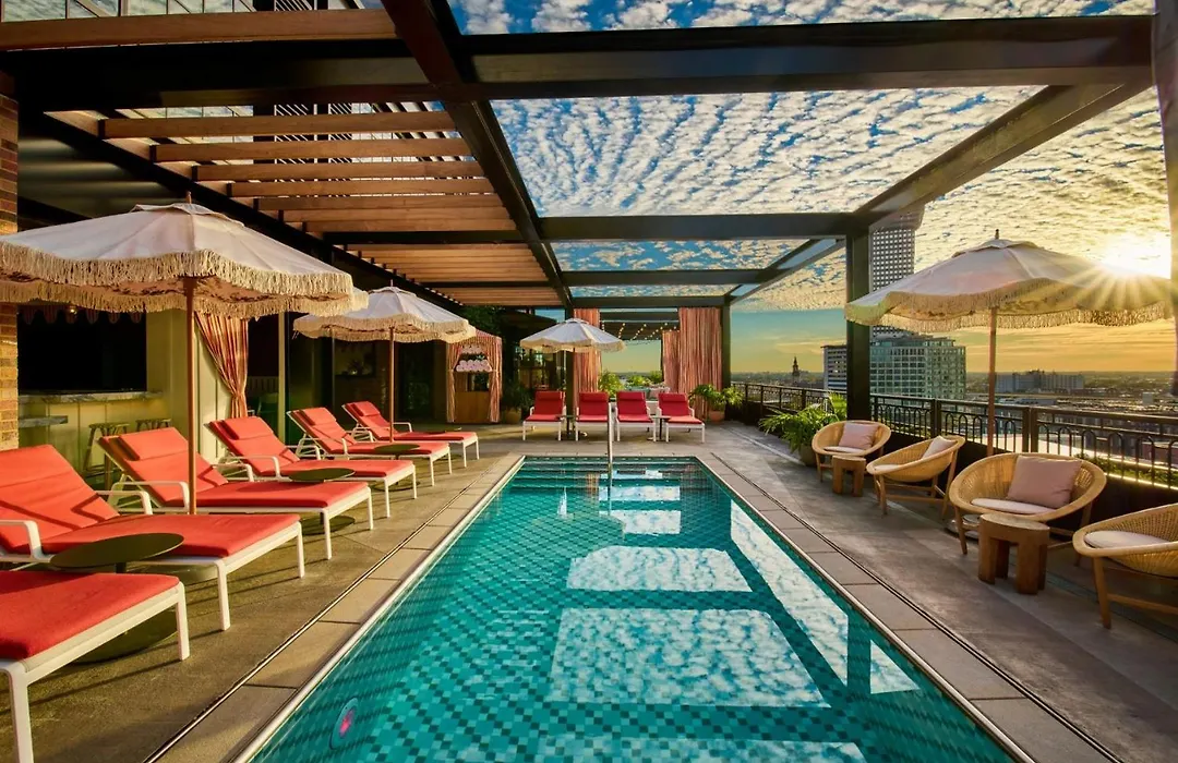 Virgin Hotels New Orleans (4-star, 9.0/10 Booking.com rating) features a rooftop pool overlooking the city, a fitness center, and a vibrant dining scene. The hotel welcomes pets and offers a unique two-chamber room design, making it ideal for modern travelers.
