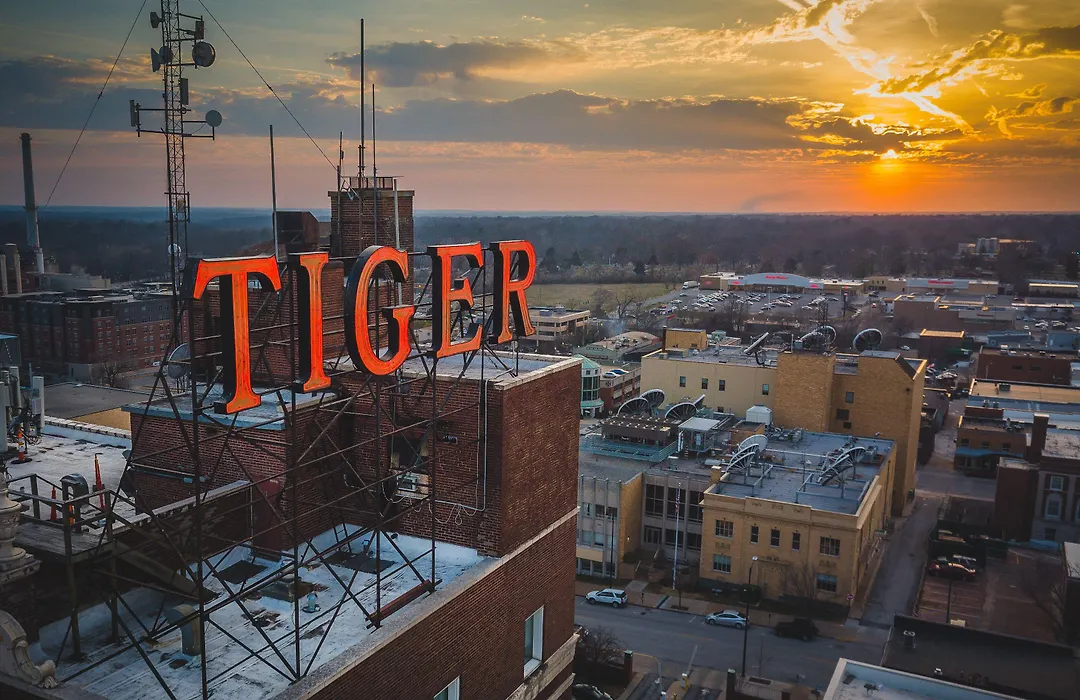 Voco The Tiger Hotel, Columbia, Mo By IHG is a luxury boutique hotel featuring a blend of modern comfort and historic charm, reflecting the essence of the Roaring Twenties. Guests can enjoy a variety of dining options and amenities, including award-winning cocktails and a state-of-the-art Wine Keeper system.