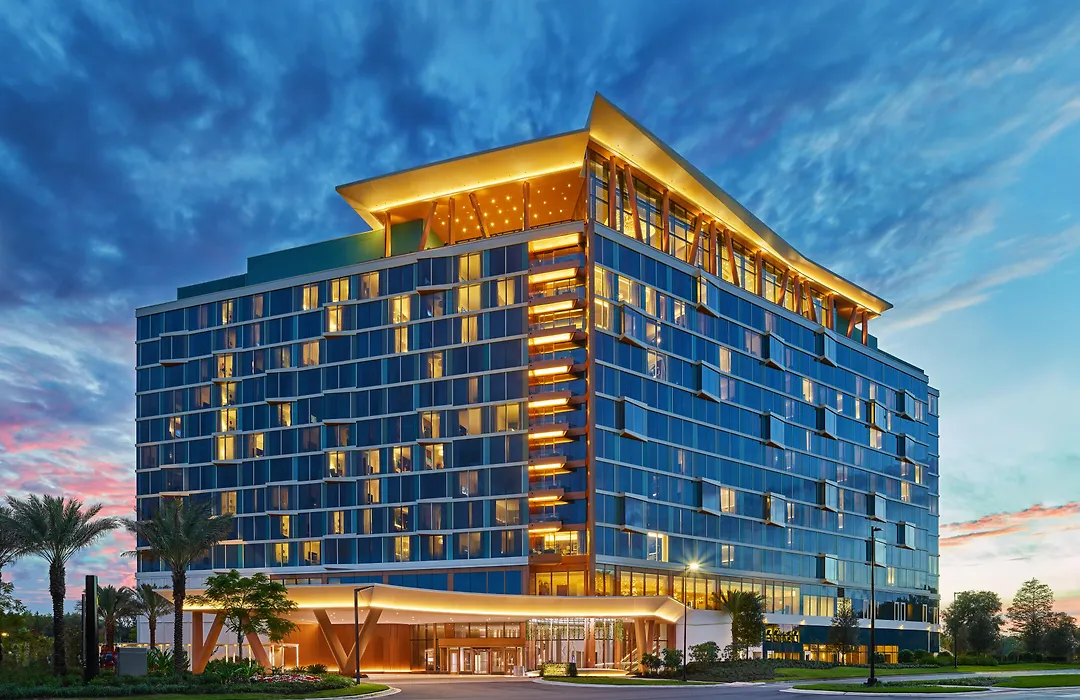Walt Disney World Swan Reserve features stylish accommodations with modern amenities and is rated 8.5/10 on Booking.com. This 4-star hotel offers a restaurant, bar, shared lounge, garden, outdoor swimming pool, and fitness center.
