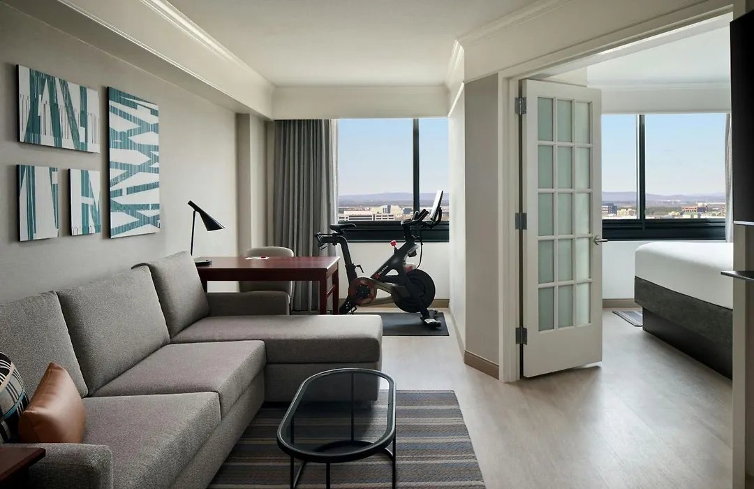 Every suite at Washington Dulles Marriott Suites includes separate living areas and amenities such as a wet bar, mini-refrigerator, and premium bedding. Guests can enjoy a spacious environment that features comforts like air conditioning and a TV with access to Netflix and Hulu.