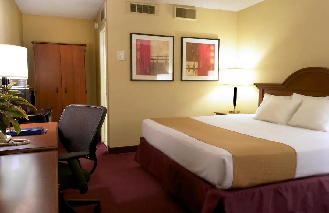 Guests can enjoy recreational amenities that include a fitness center and indoor pool. The hotel also offers banquet facilities for special occasions and a common area with a television for relaxation.