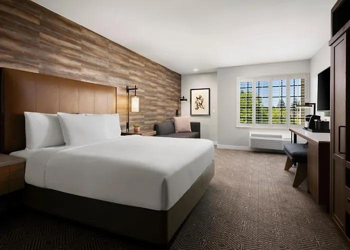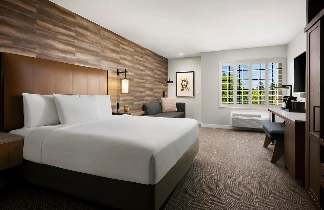 Each room at Napa Winery Inn includes high-quality bedding, a 55" flat-screen television, complimentary Wi-Fi, and a coffee maker. The deluxe king rooms provide extra space with a plush king-size bed and a small sofa, making it a comfortable option for guests.