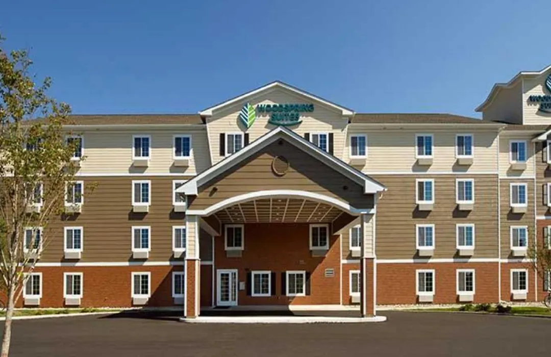 The Woodspring Suites offers guests convenient services including a 24-hour front desk, express check-out, and laundry facilities. Parking spaces are available for guests, including spots for vans. The hotel also provides pet-friendly accommodations for those traveling with dogs.