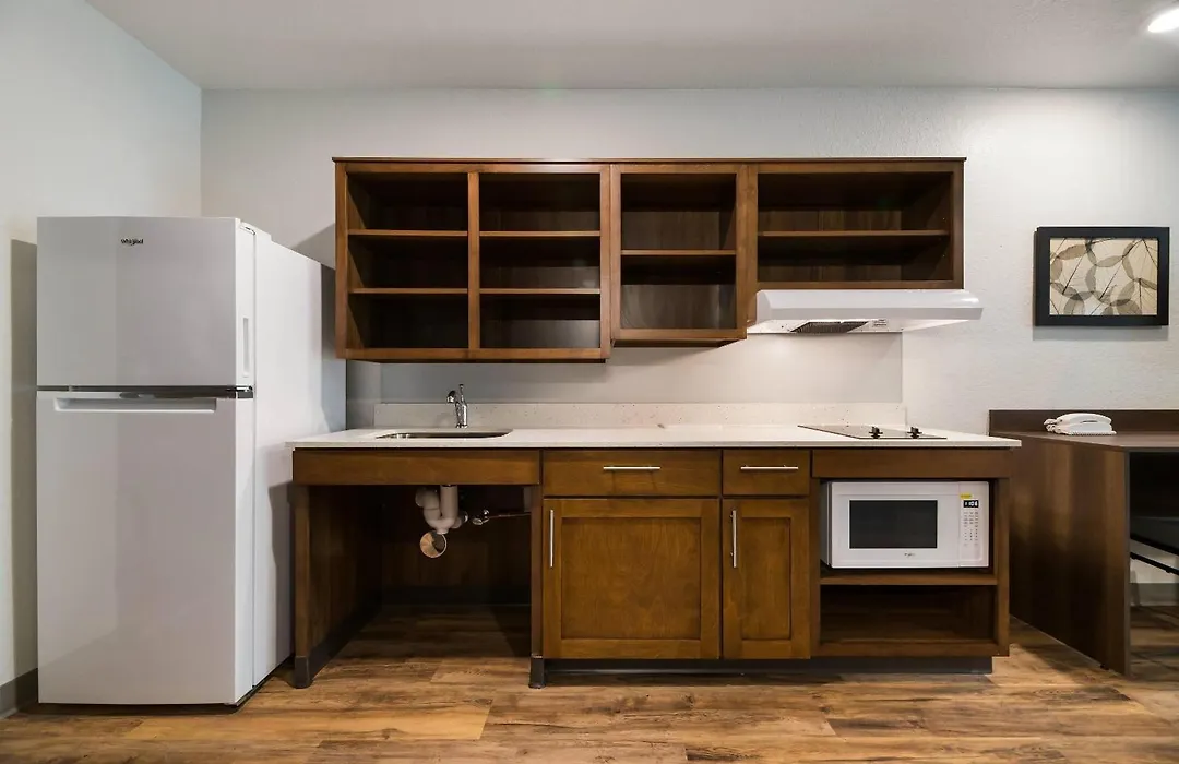 Rooms at Woodspring Suites include air conditioning, flat-screen TVs, and private bathrooms. Each unit features a fully equipped kitchen with a stovetop, refrigerator, and microwave, allowing guests to prepare their own meals. A wardrobe and a desk are also included in the accommodations.