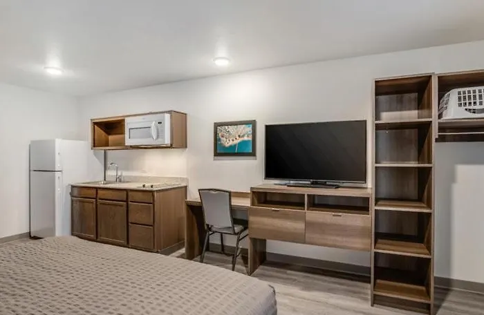 Each suite at Woodspring Suites features a full kitchen equipped with a full-size refrigerator, stovetop, microwave, and prep sink. Suites also include queen-size beds, a flat-screen TV, desk, and generous storage space. Weekly housekeeping services are available, and additional amenities like cookware can be obtained at the front desk.