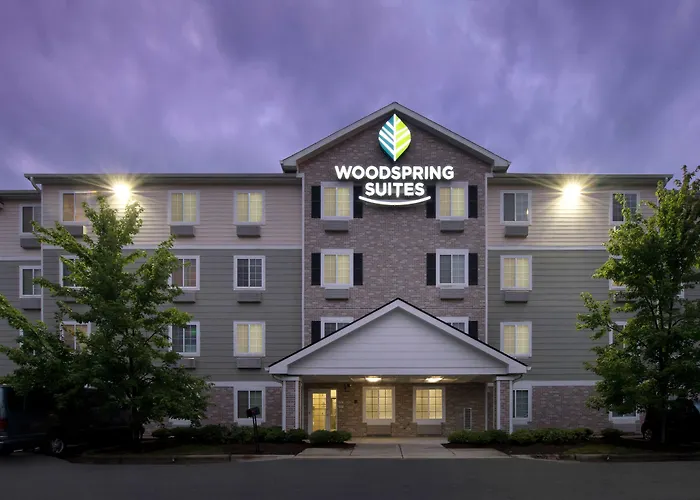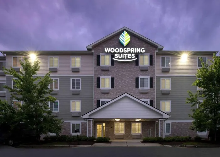 WoodSpring Suites Raleigh Apex offers an extended stay environment ideal for business travelers and families, featuring clean rooms, full in-room kitchens, and 24-hour staff assistance. The 2-star Apex hotel emphasizes convenience with amenities like laundry facilities and free parking.