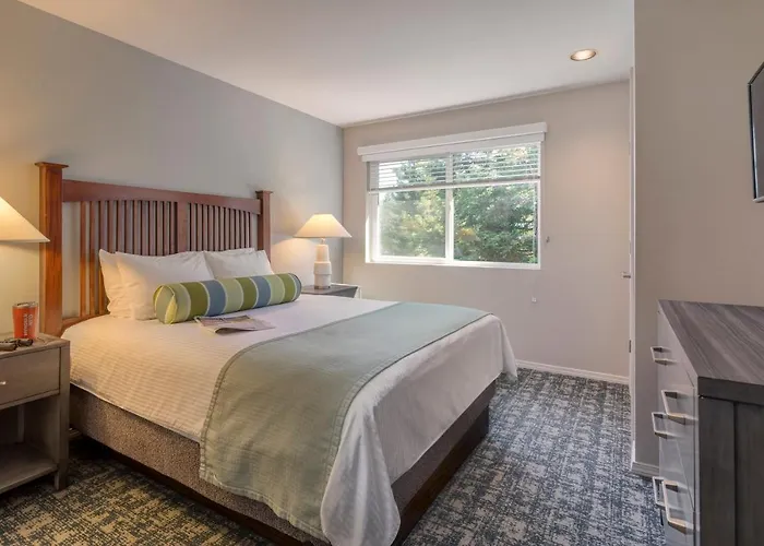WorldMark Bass Lake, a 3-star family-friendly hotel, features spacious two-bedroom, two-story resort suites that accommodate up to six guests. Amenities include a seasonal outdoor pool, children's playground, a hot tub, and a fireplace in each suite.