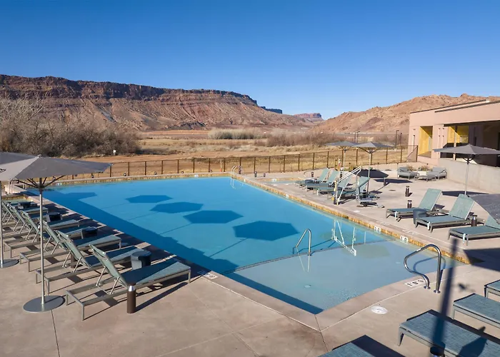 Worldmark Moab is a 3-star family-friendly resort that features condo-style accommodations designed for groups and families. Guests can enjoy amenities such as an outdoor swimming pool and hot tub. The hotel boasts a Booking.com rating of 9.2/10.