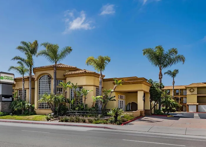 Wyndham Garden San Diego offers modern conveniences and relaxation near SeaWorld, featuring a sprawling five-building complex surrounded by palm trees. This 3-star San Diego hotel provides free WiFi, a heated outdoor pool, and a hot tub.