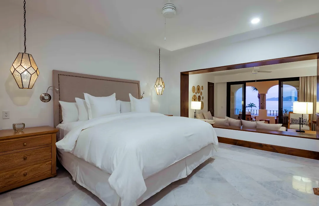 Rooms at Zoetry Casa Del Mar feature private, furnished balconies with ocean views, luxury bath amenities, and a range of accommodations such as the expansive Presidential Two Bedroom Suite with an outdoor infinity-edge plunge pool. Each suite is designed with modern decor and incorporates indigenous art.